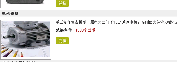 我喜欢模型,看到一个电机模型。挺喜欢,就兑换一个。
