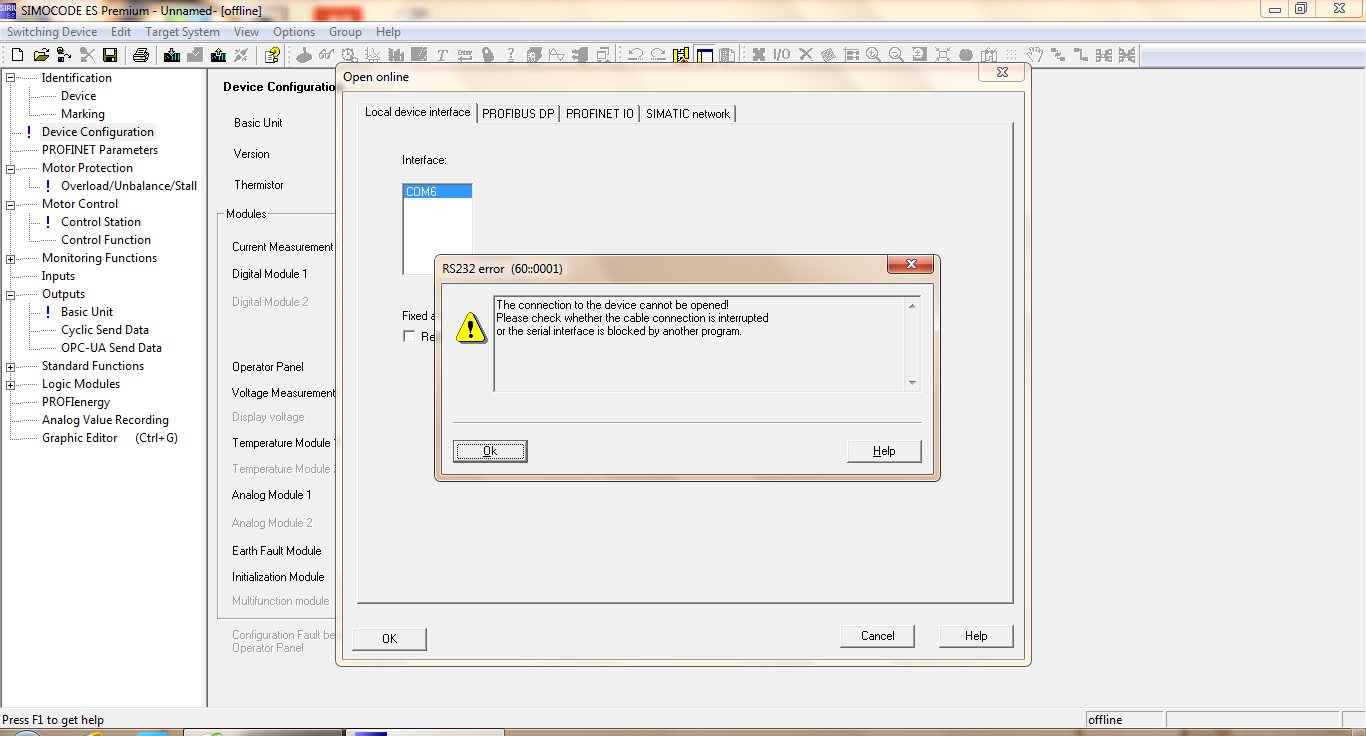 我将simocode pro c 中的profibus dp九针接口接上485转232的转换器,然后转换器的另外一端接上rs232的线,连在我的手提电脑上,现在无法连接到我的手提电脑啊。