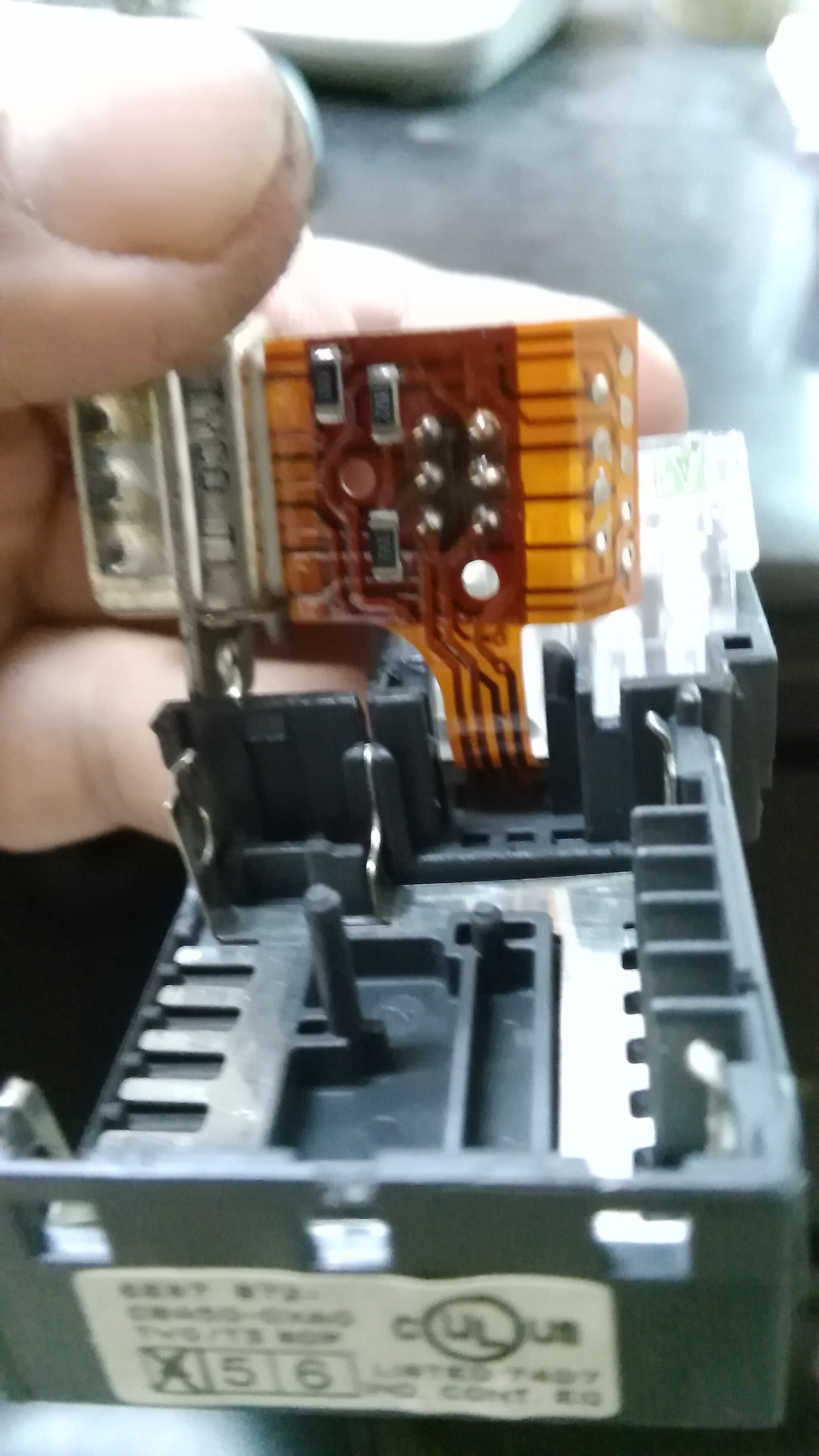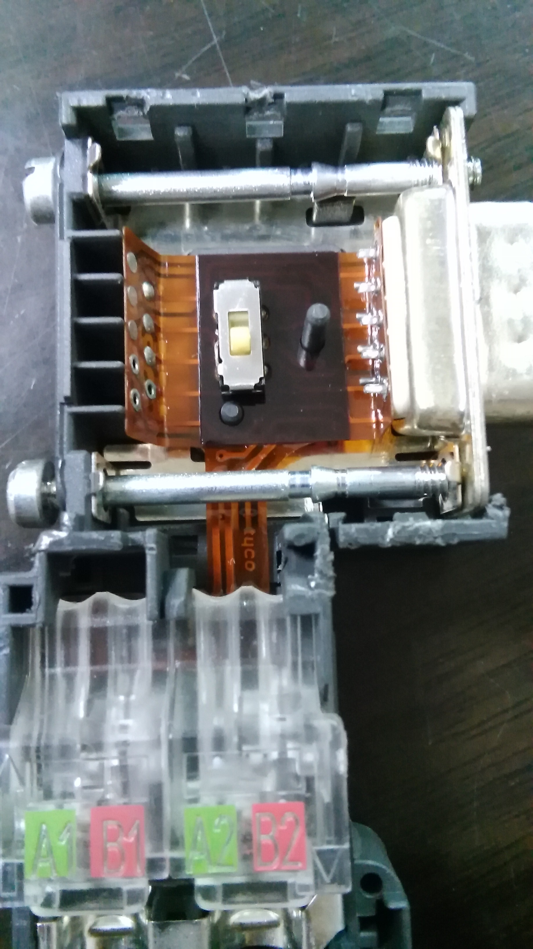 近段时间进口线的DP通讯出现了几次通讯中断或是通讯瞬间中断问题,导致生产线70VC,MC等DP子站通讯中断停机,查明都是使用了近十年的6ES7 972-OBA50-OXAO 快速插接式DP头出现接触不良,以前也没有仔细看看DP头的内部结构,今天趁着有空闲时间拆开了一个插头仔细看了一下。下面的5个图就是拆开后照的图片