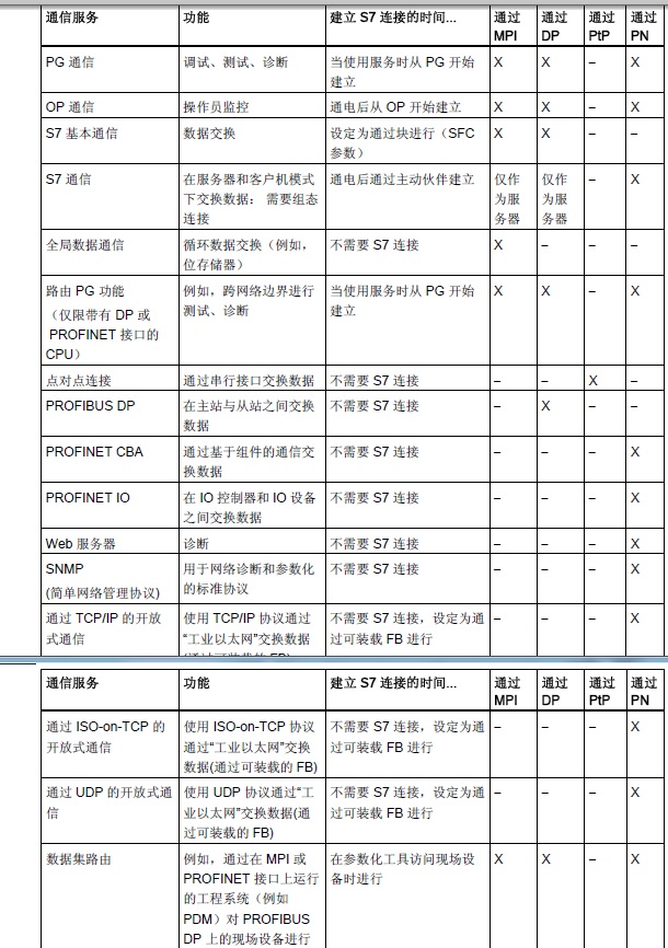 PN口 是Profinet 接口,标准的协议,每个独立的设备有 MAC 地址。 通过MAC地址识别分配设备名,通过组太的设备名,和对应的IP地址,自动分配IP地址,有一套启动,运行(周期性和非周期性通信),故障诊断,拓扑正确的话,支持热插拔! 基于OSI 模型的协议,所有PN口支持以太网基础通信功能。 下图CPU 通过 PN口支持的连接有: