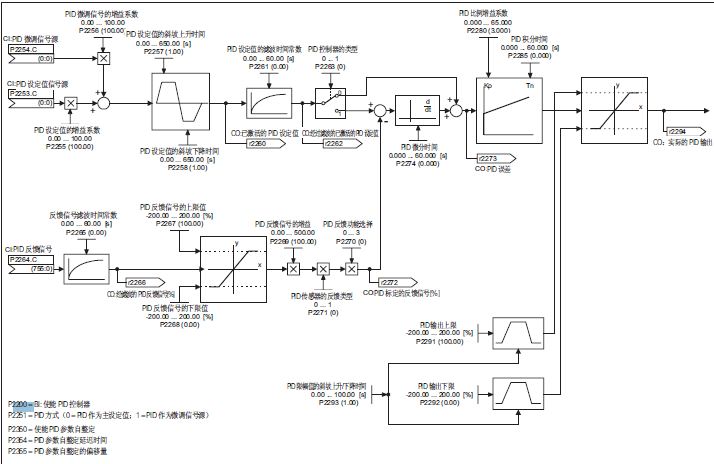 西门子MM430,440里面提供了PID功能的丰富应用,具体见功能图,不过现在很多现场是在PLC里做PID运算,其实就应用来说,我个人偏好变频器里做PID功能。