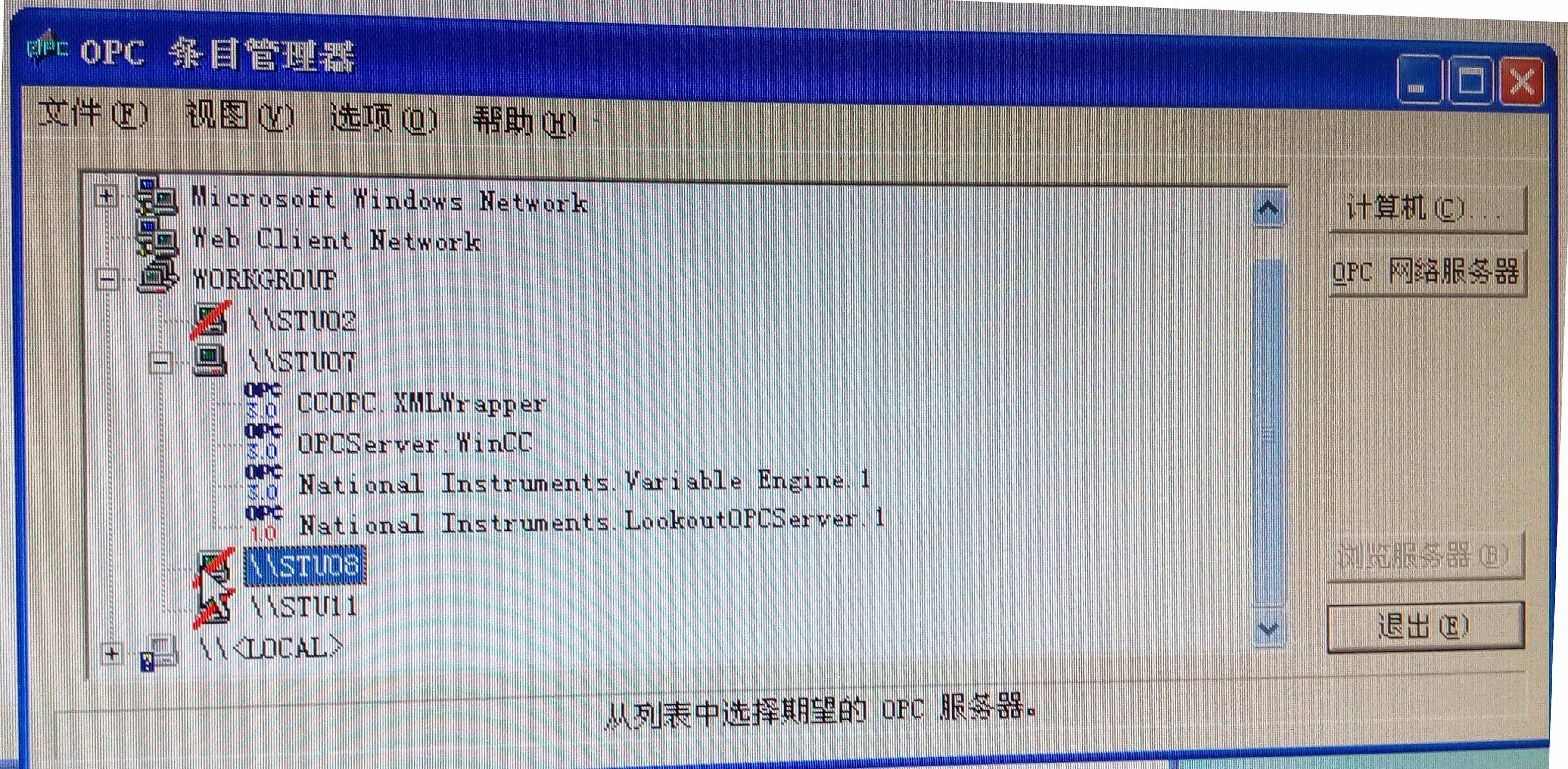 opc条目管理器的状态如图1,为什么服务器的电脑上代个红斜线?都不能连接;