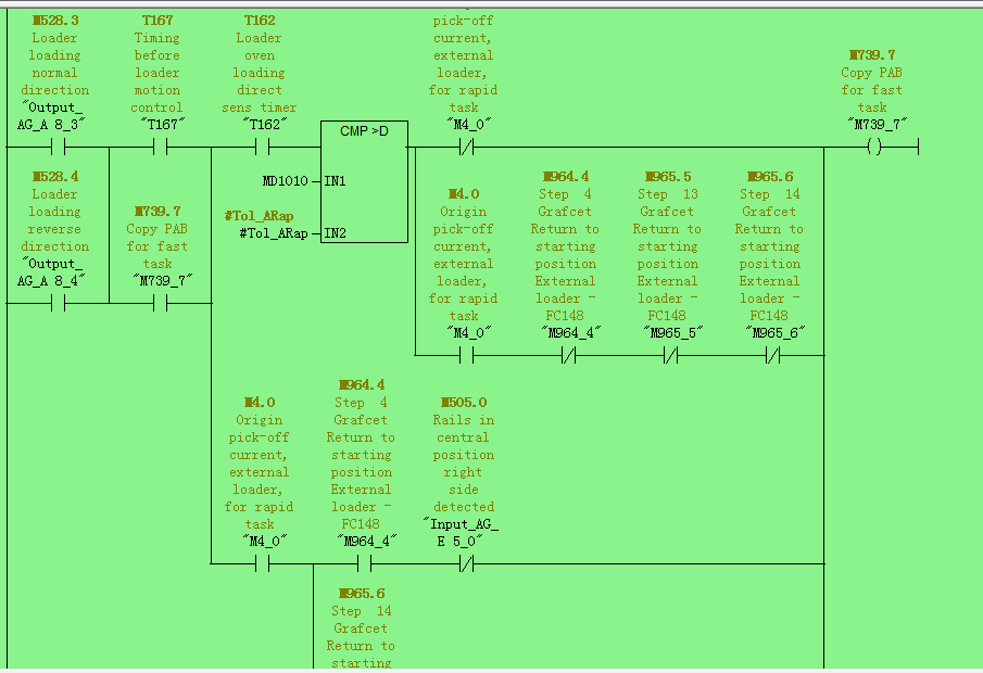 谢谢你解读这段程序,经过你一说我在反回去看m739.3和m739.4确实和q8.3和q8.4,当实际值和《设定值加或减公差值》比较控制q8.3和q8.4正反。