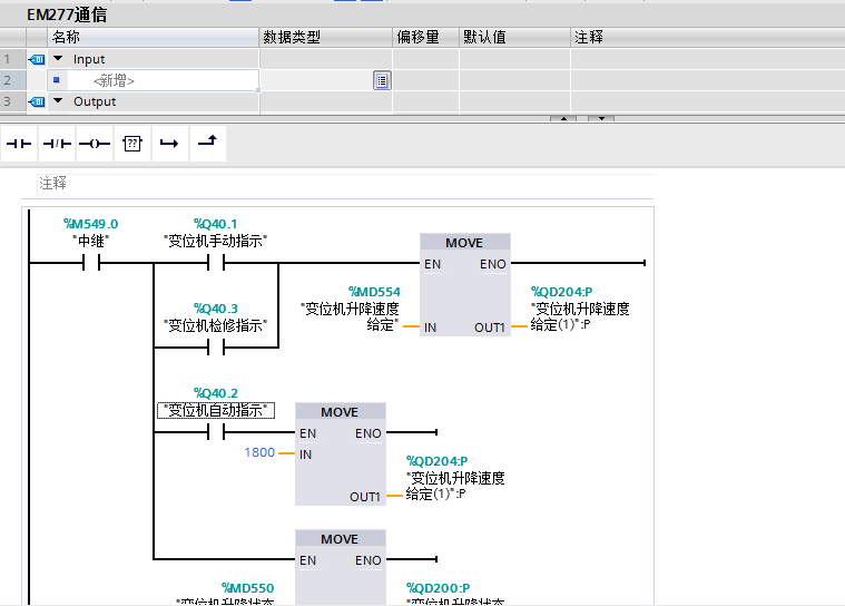 麻烦那位知道一下,下图是通过博图写的300PLC与200EM277通信的程序,为什么速度给定传输时后面要用:P,代表啥意思,谢谢