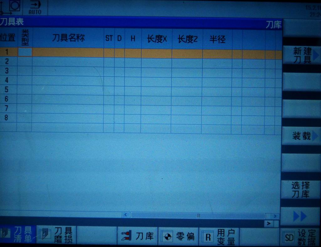 之前一直用802D感觉习惯了,最近到了一套828D T版,机床刀架有8把刀,运行刀塔初始化后出现图1A的画面,新建刀具后,出现了图1B的画面,建立的刀具不能在第一行里(即T1)请问应该怎样操作?还是参数设置有问题?