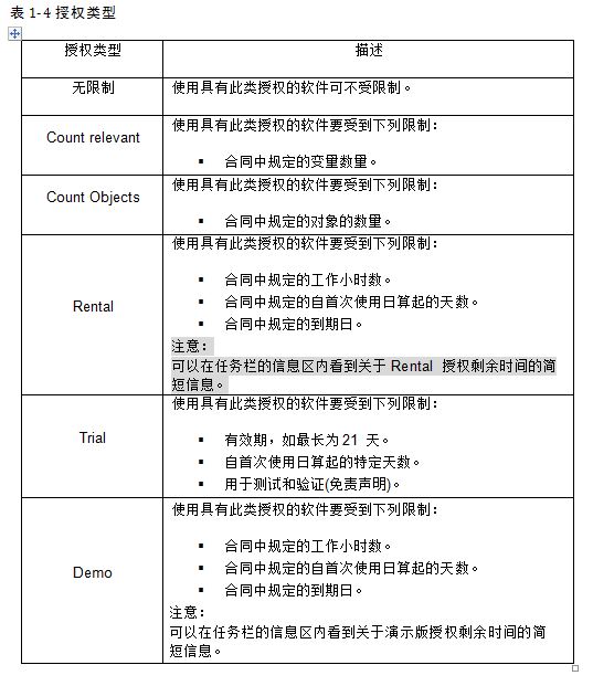 西门子软件产品有下列不同类型的授权,参考表1- 3和表1- 4。