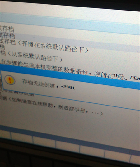 对808D数控系统进行数据备份时显示:存档无法被创建:-2501
