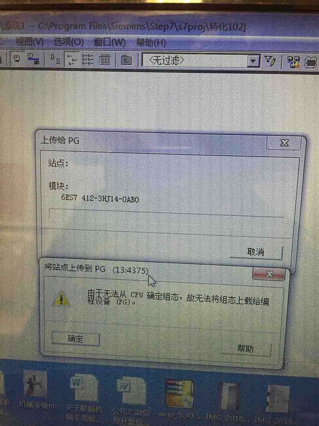 然后新建一个空白项目,从PLC上传程序到DP,设置好机架号,选择哪个PLC组,然后如图所示告诉我无法从CPU确定组态。(如果机架号不对的话就显示无法建立通讯,两个PLC组都试过了一个是0架3槽一个是1架3槽都是这个问题)问题是我的硬件更新里面也更新了CPU41X类所有的硬件了啊。请大神告诉我现在应该怎么解决这个问题才能读取PLC上的程序啊。