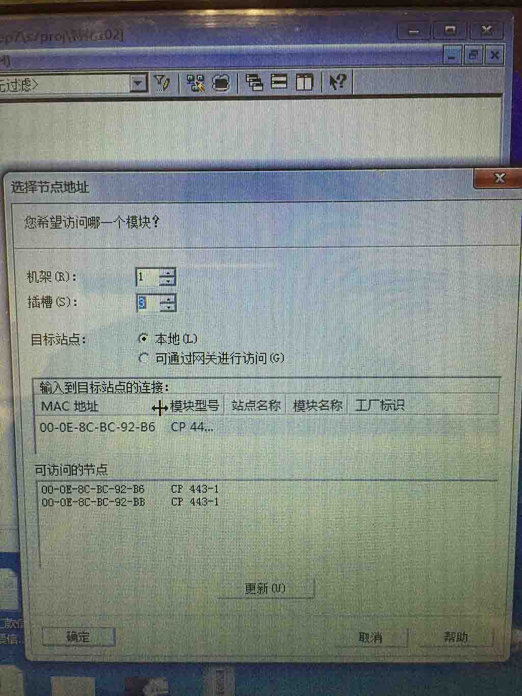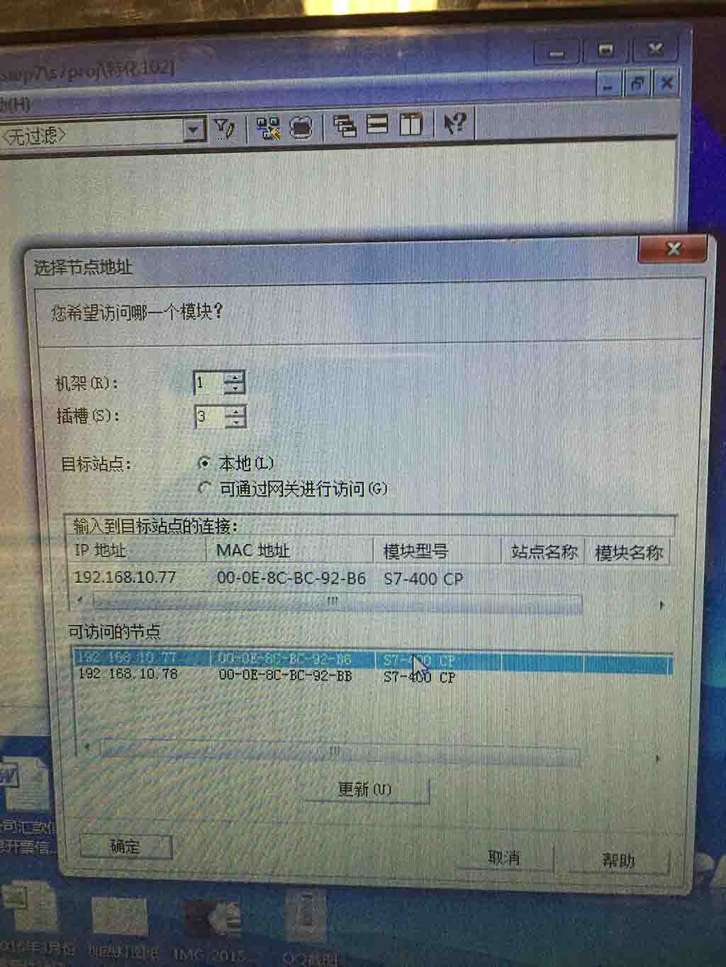 单位有一套PLC系统由于5年多了,厂家也不管,需要读取程序检查哪里出错了(全部输出都没有了,输入模块绿灯有亮的)。系统组成大致是:两组,注意是两组412-3的CPU,分别通过profibus连接分布在不同地方的机组IO模块。我想通过STEP7直接读取PLC里面的程序。将监控电脑的网线拔下直接连接自己的笔记本(监控电脑是XP系统无法安装STEP7,我的笔记本有安装好了的step7V5.5SP4),从网上下载了最新的硬件更新并将笔记本硬件进行了更新。笔记本设置好IP(192.168.10.10,子网掩码255.255.255.0,和监控电脑的IP相同)然后在STEP7里面设置PLC的IP为192.168.10.77和192.168.10.78(监控电脑用的是组态王的人机界面,IP是设置好的,通过STEP7设置时候两组PLC均没有IP所以我自己设定的77和78地址)。