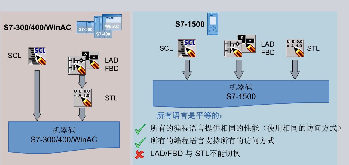 这个是由博途的架构决定的,在博途STEP7架构下,LAD/FBD,SCL,STL这几种语言之间的地位是平等的,所以一个程序块一旦建立,编程语言就不能够再次切换。LAD和FBD之间可以切换。