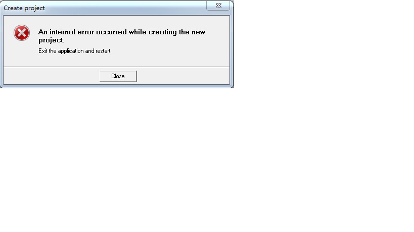 An internal error occurred while creating the new project.