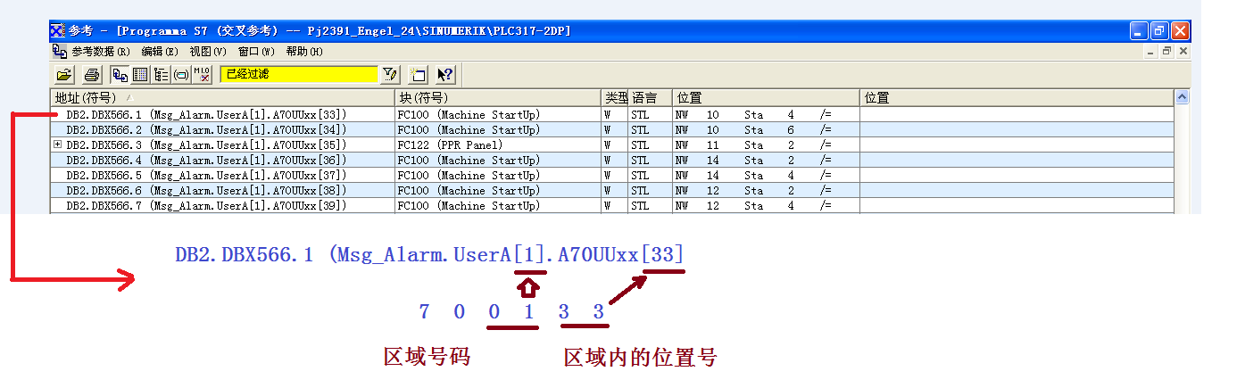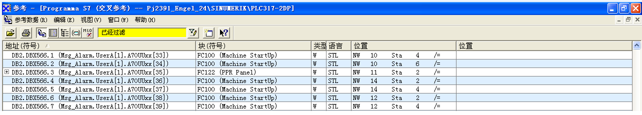 利用S7-300的交叉参考并过滤DB2: