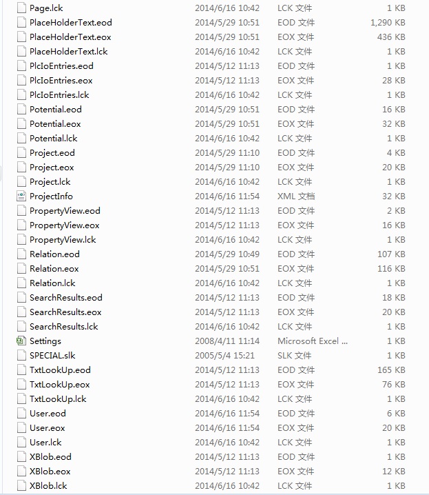 后缀名eod,eox,lck的文件。上一级文件夹后缀名是edb。和一个S7-300程序文件夹配套的。不知道是不是西门子触摸屏程序文件。但是HMI文件又不在这个文件夹里的,反而是在S7-300程序文件夹里的