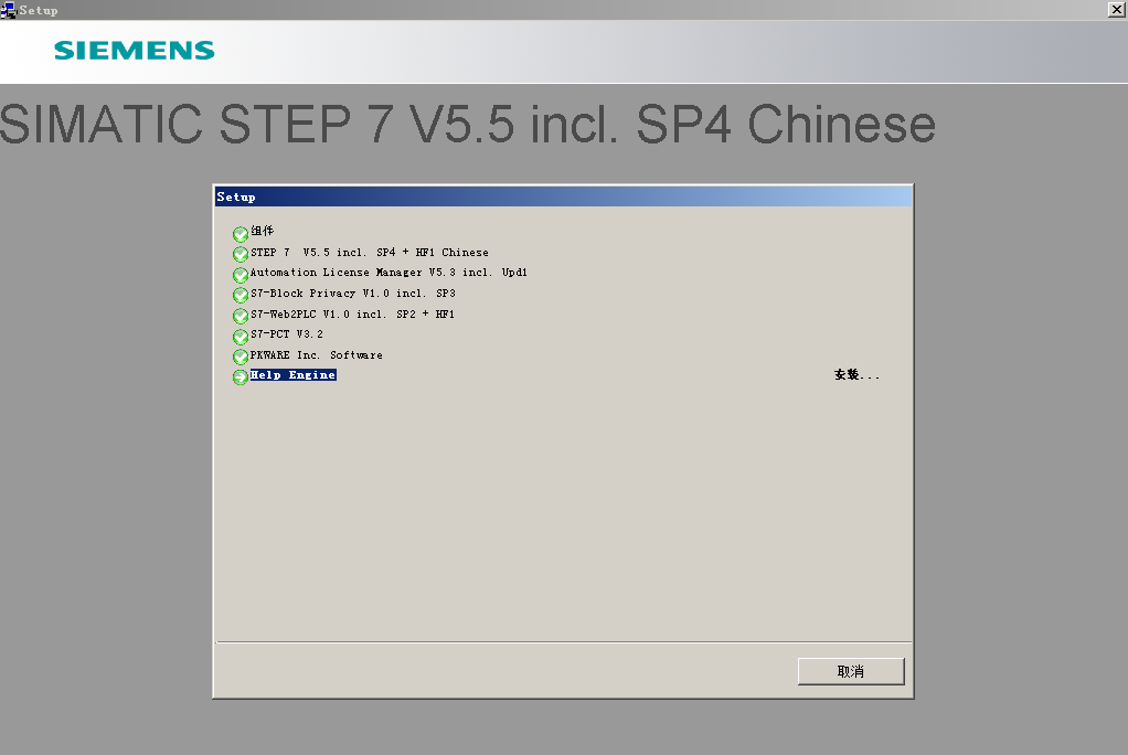 安装STEP7 V5.5 SP4 在 Help Engine 卡住5-6小时以后才完成安装。