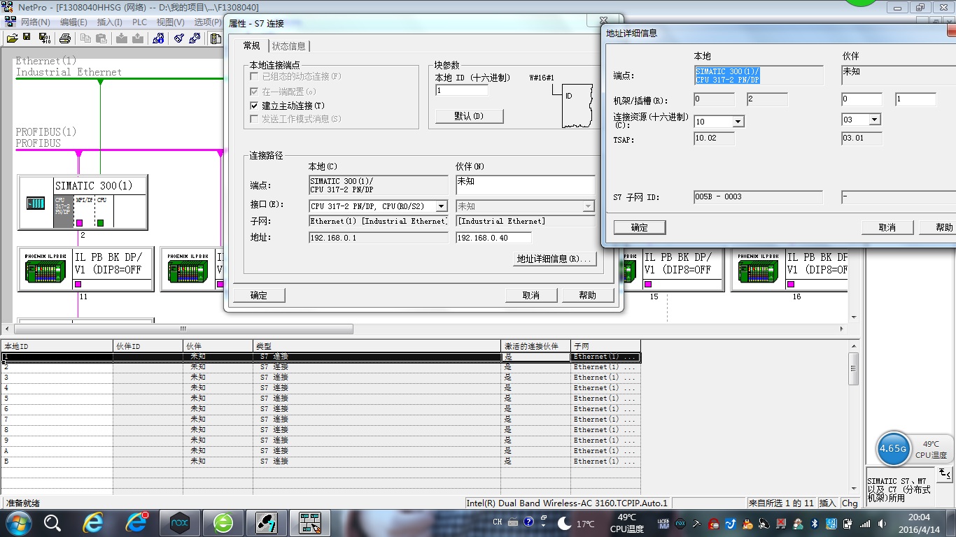 如图:系统硬件由1个317-2 PN/DP和11个1200组成,每一个1200都需要和317进行数据交换,网络部件是菲尼克斯的无线系统,每一个通讯连接都分配了有独立的数据块,在OB1里调用了FB14,FB15。目前无线网络构建完毕,每一台1200和317的通讯业都测试过,数据交换正常,但将所有通讯同时激活后问题出现了:通讯数据互串,如1#连接的接受DB块里监控发现出现来自其他连接的数据,其他连接也一样。所有连接的参数设置除通讯伙伴的IP地址,本地ID和本地连接资源外其他都一样,不知道是哪里出错?