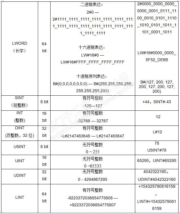LINT、DINT、INT与SINT虽然变量长度不同,但表示方法类似,即最高位为符号位;而ULINT、UDINT、UINT和USINT均为无符号整型变量,所以无符号位。