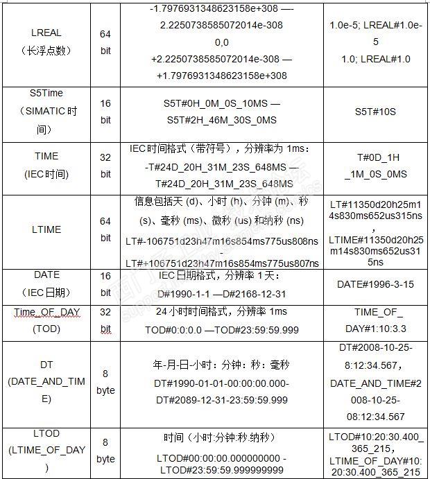 LTIME(IEC时间)时间数据类型长度为8个字节,格式为:LT#Xd_Xh_X m _Xs_Xms_X us _X ns,操作数内容以纳秒为单位,LINT数据每增加1,时间值增加1 ns。