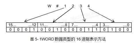一个WORD包含16个位。以二进制编码表示一个数值时,将16个位分为4组,每组4个位,组合表示数值中的一个数字。例如以16进制表示数值W#16#1234的方法如图5- 1所示。使用16进制表示WORD数值时没有符号位。
