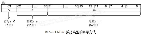 一个LREAL类型的数占用8个字节的空间。S7-1500中的LREAL数据类型符合IEEE754 标准的浮点数标准,一个LREAL数值包括符号位S、指数e和尾数m,分别占用的位数如图5- 6所示。