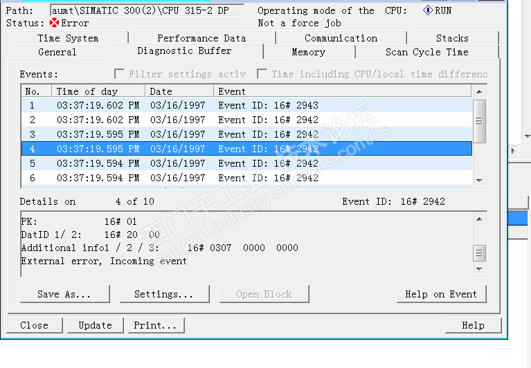 诊断显示信息如下,下面的additional infol 16#0307 什么意思