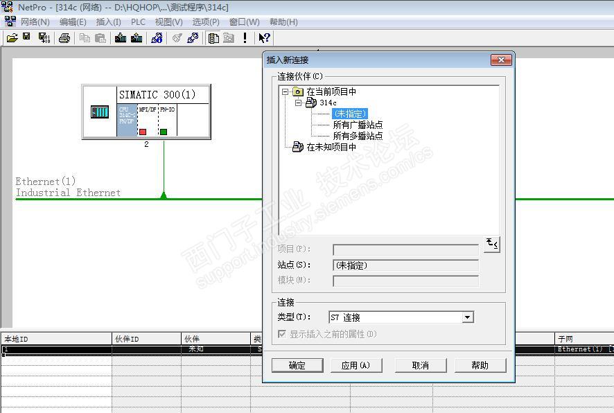 2、 打开硬件组态,设置314C -2PN/DP的IP地址,本工程314C -2PN/DP的IP地址为192.168.1.4,同时添加一条以太网。