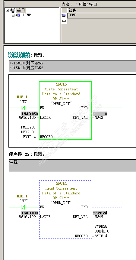 第一次用Profibus,主站是3152DP,从站是个电源。该电源可以设定电压,然后读回实际的电压、电流和功率。