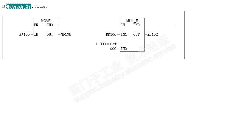 假设楼主上位机设定的是 MW100, real型要存储到MD102, 因为我不想建立DB很麻烦,