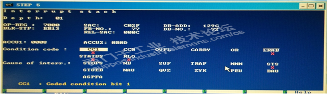 最近公司一台S5的设备,总是不定时的会发生CPU自动进入STOP状态,在线诊断故障如下图: