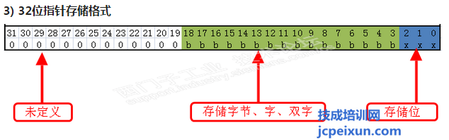 32位指针寻址表示格式为: 地址存储器标示符[32位地址指针]