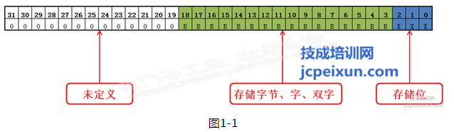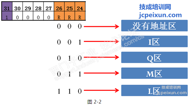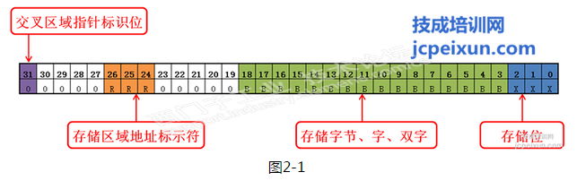 交叉区域寄存器间接寻址在地址寄存器中的排列可分为三个区域,分别是存储位信息的区域,存储字节、字、双字信息区域,和无效区域。