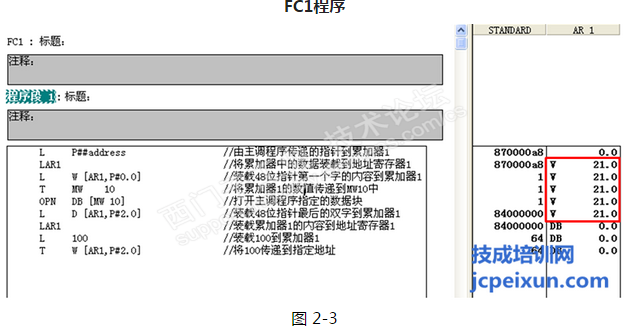 很多人看见V就会联想到S7-200PLC的V区,实际上在S7-300中出现的这个V区和S7-200的V区是没有任何关系的,在Step 7中对V区的解释是之前的本地数据那么这个之前的本地数据就应该指的是主调程序中的本地数据L区,拿本程序举例,那么FC1中出现的V21.0指的就是OB1中的L21.0。