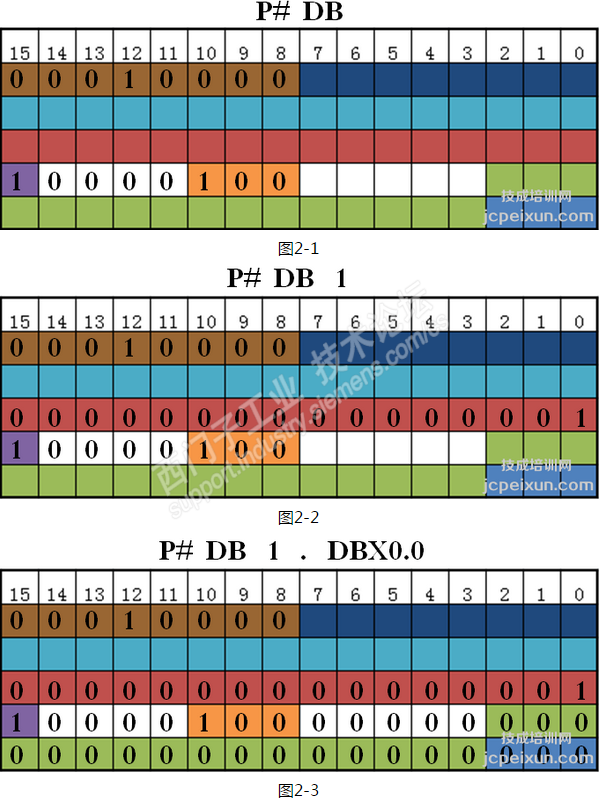 当寻址为全局数据块DB时地址标识位的内容为100如图 1-3所示,当寻址为背景数据块DI时地址标识位的内容为101如图 1-4所示。