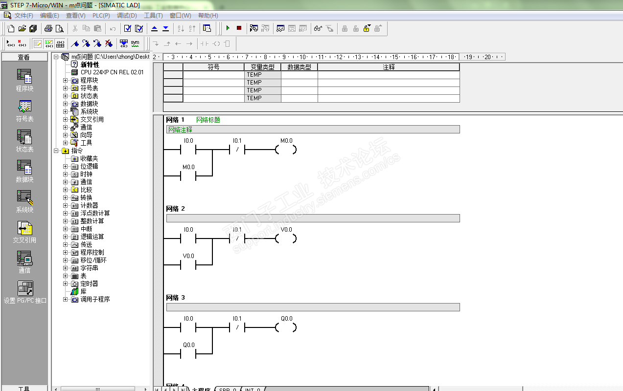 但是,为什么我自保持后,不用I0.1断开,然后去下载程序.m区依旧接通.而q0.0 v0.0却都断开了.这m区我也没设保持之类的啊