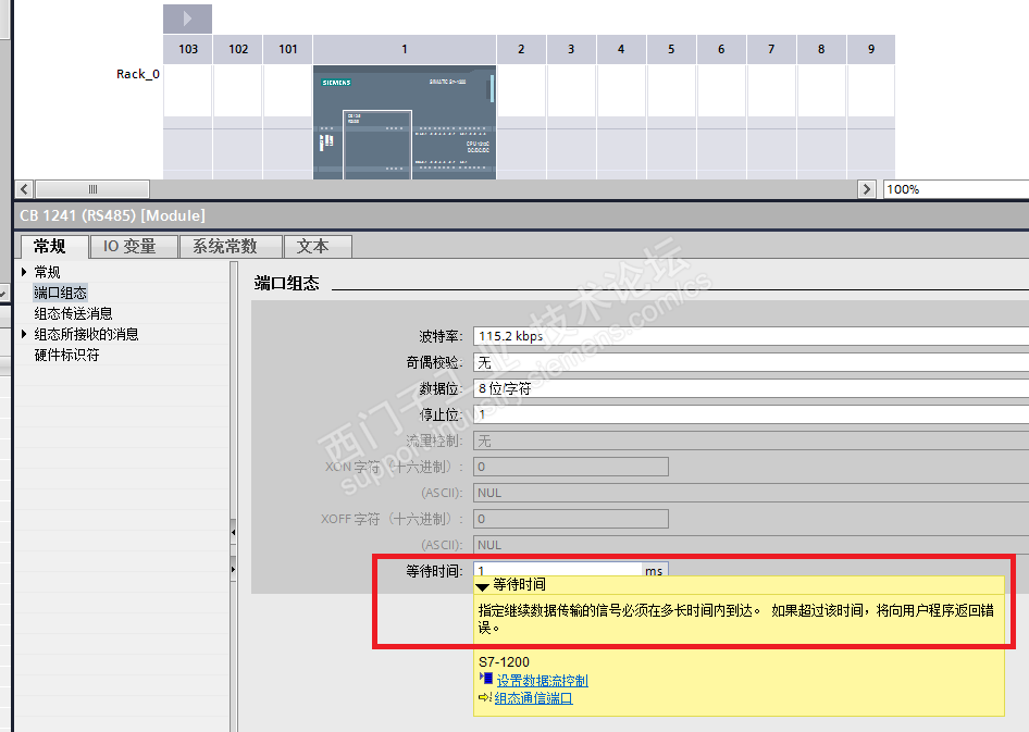 请看下面两个图,TIA的弹出帮助和在线帮助里说的分明就是两种含义,我认为是在线帮助里说的对,“等待时间”(Wait time)=在消息结束后下一次传输开始前必须暂停的时间,大家觉得呢?