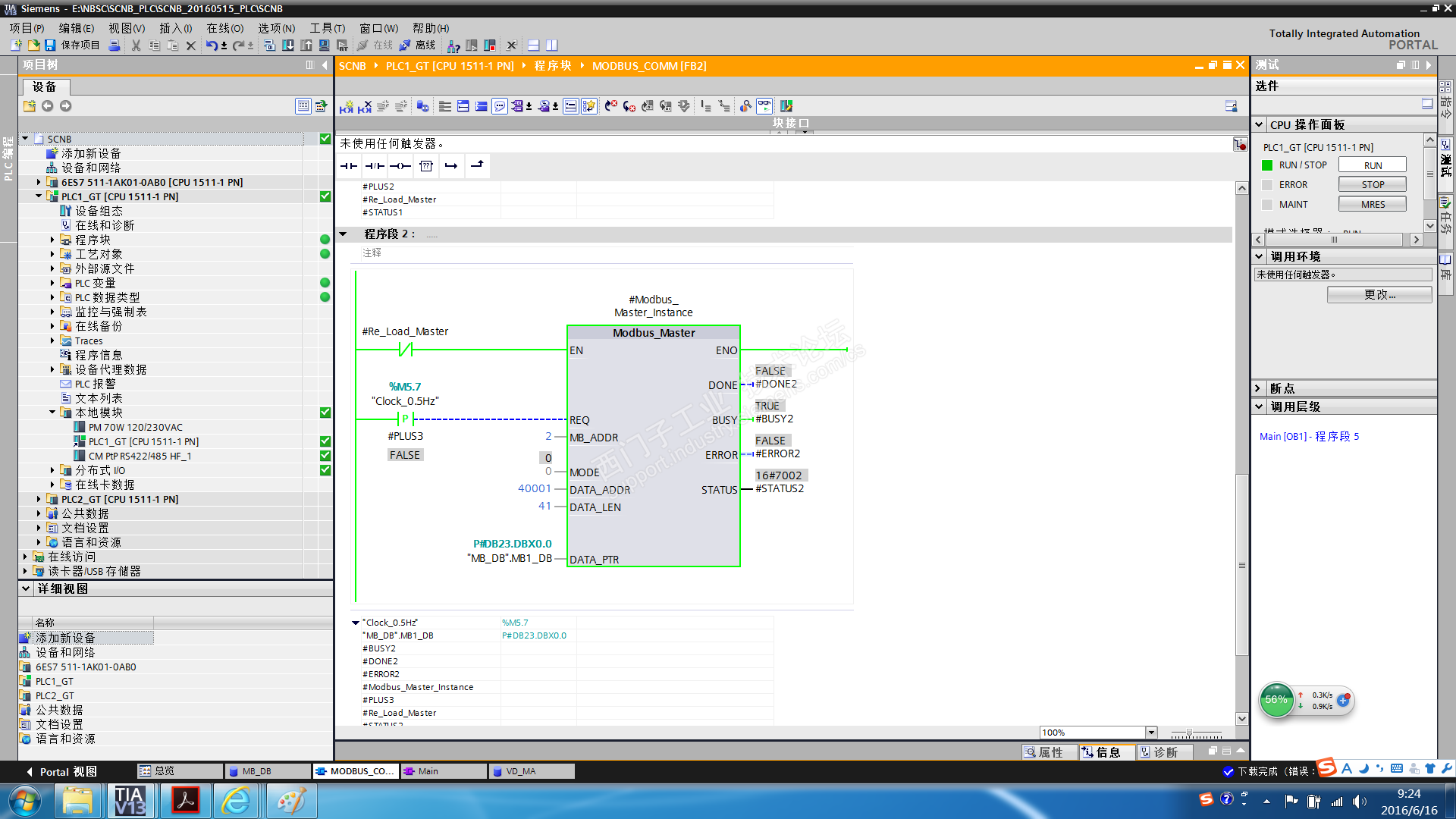 Req不建议用周期脉冲+上升沿(尤其),Req=True触发发送请求,使用Modbus_Master的Done 或 Error信号来复位Req = False