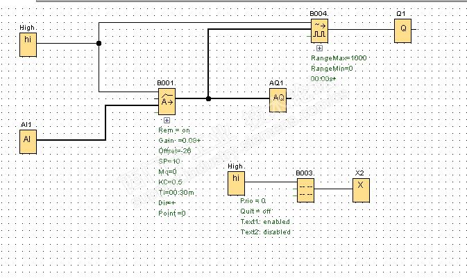 首先说一下程序,通过K型热电偶测温度传入隔离变送器中,变送器输出一个4-20ma的信号到LOGO中,根据温度大小控制输出0-10V信号球阀,控制球阀打开关闭。现在遇到问题是文本不显示温度和球阀的开关量,球阀只是一直打开不关闭。