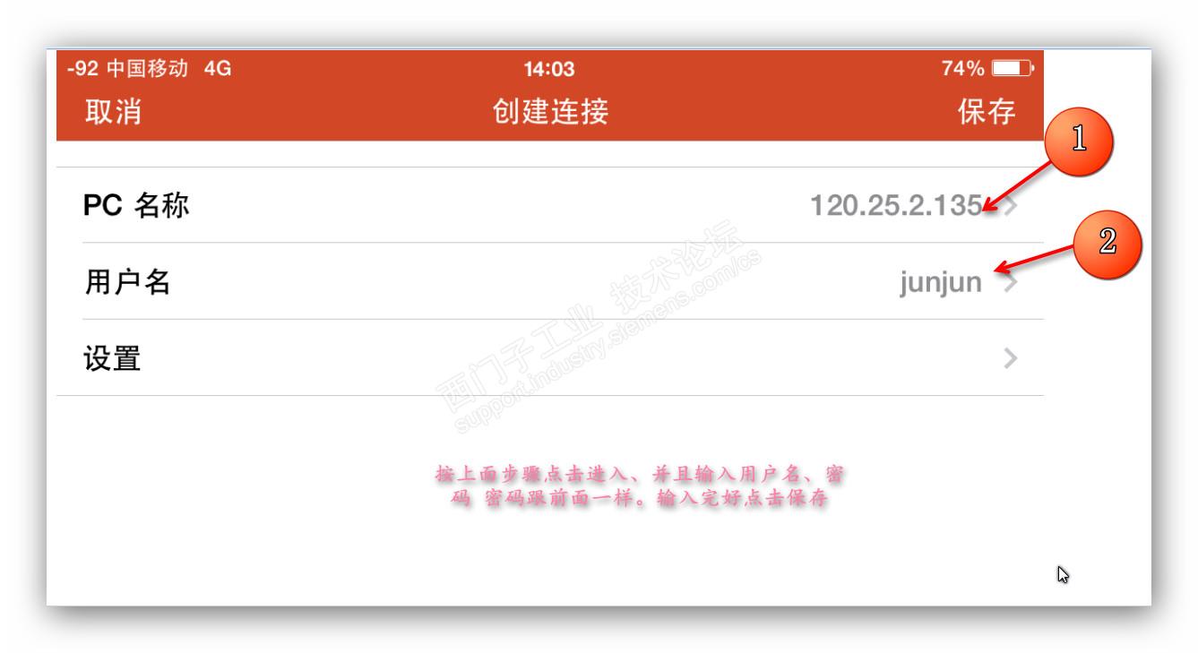 按照第一步骤完成后,必须在2分钟内完成第二步的内容 第二步步骤打开RD Client 软件 添加IP地址 、用户名、密码 保存、点击连接