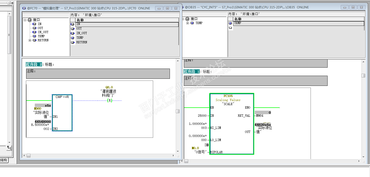 如图在OB35里MD60的数值到FC70里数值发生了变化,一张图是表达式选自动,另一张图是表达式选十六进制。MD60在符号表里定义为实数。如果在OB35里使用MW就完全没有上述问题。恳请大家帮忙!刚才我又试了下如果把MD60通过move给其他MD,然后再在FC70里使用其他MD就没问题了。