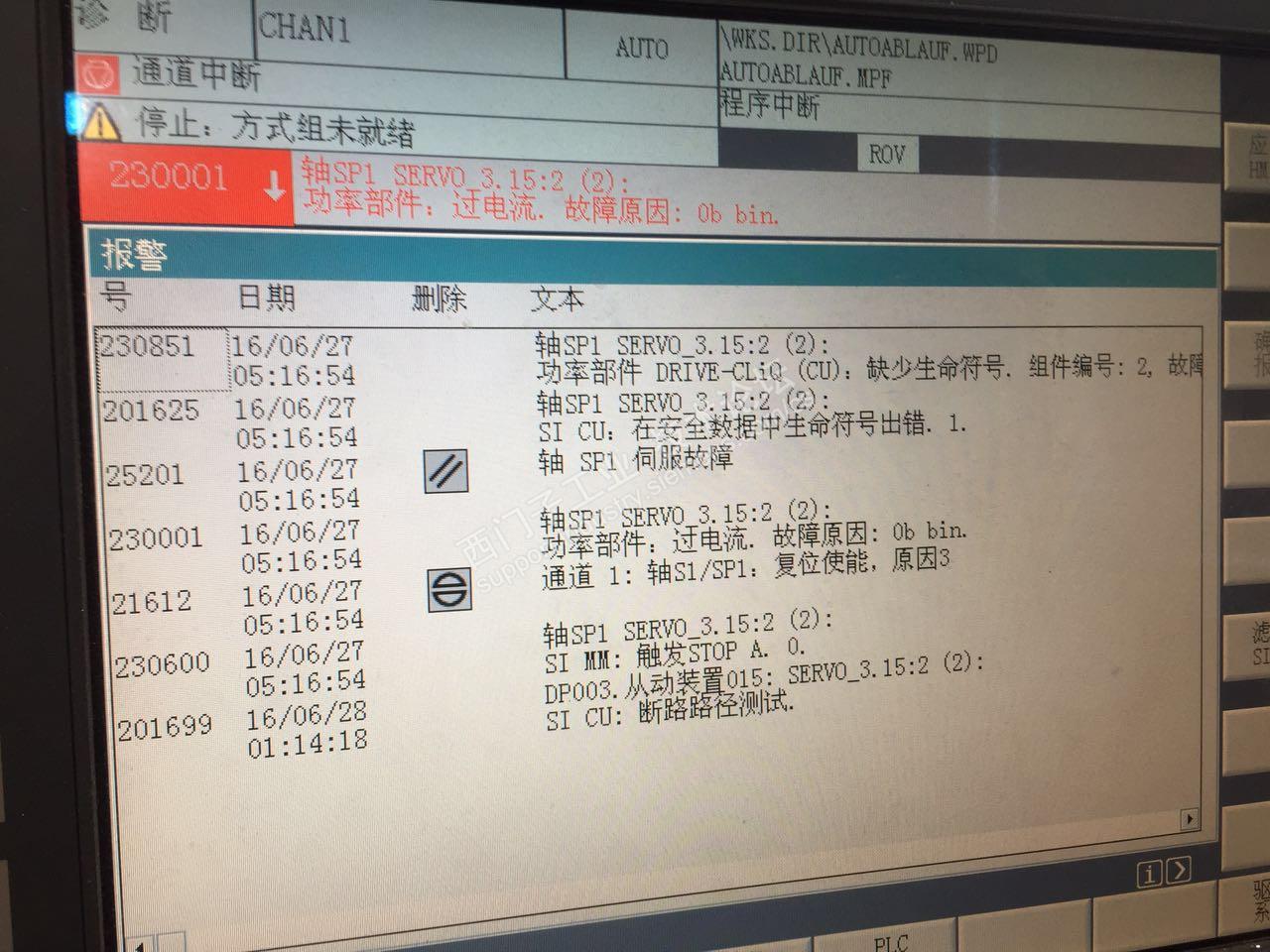 现在已经更换够主轴电机出现下面的报警