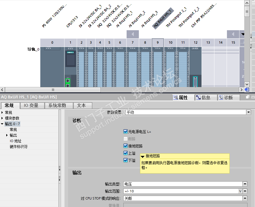 在AQ模块的配置中,博图环境下比step7多了一个接地短路故障