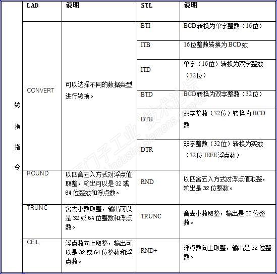 如果操作数的数据类型不兼容或者由编程人员设定转换规则时,则可以进行显式转换(不是所有的数据类型都支持显式转换),显式转换的指令参考表6- 8。