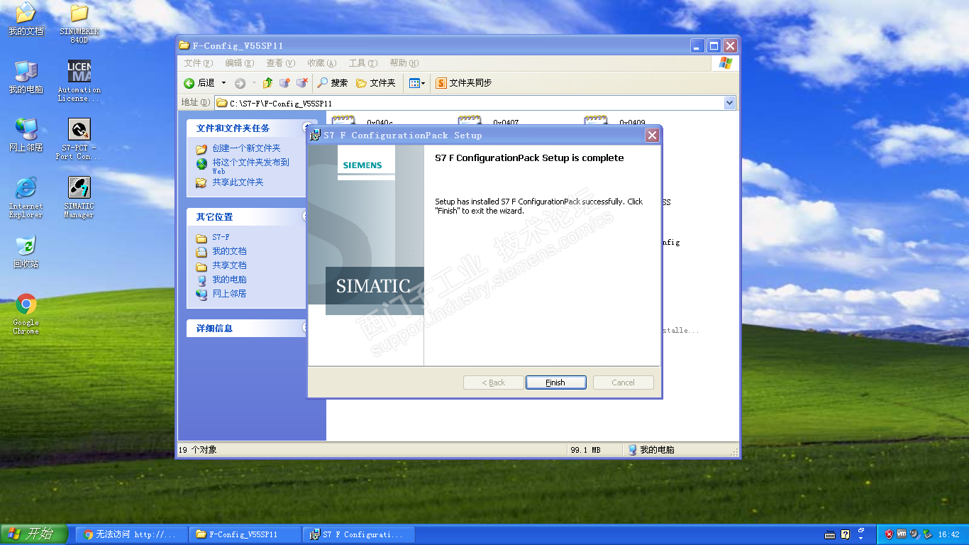Step7在WIN7里一般使用也没什么问题,遇到F系统就麻烦了,分布式安全的软件包怎么也装不上,840D的工具盒安装超时,但是能用,今天把他们装到XP的虚拟机里一次成功。(PS:我的虚拟机不能用U盘,显示连接成功了,没有显示盘符,也连接不了主机驱动程序错误,现在只能映射硬盘到主机 ,主机WIN10虚拟机VMWARE12)