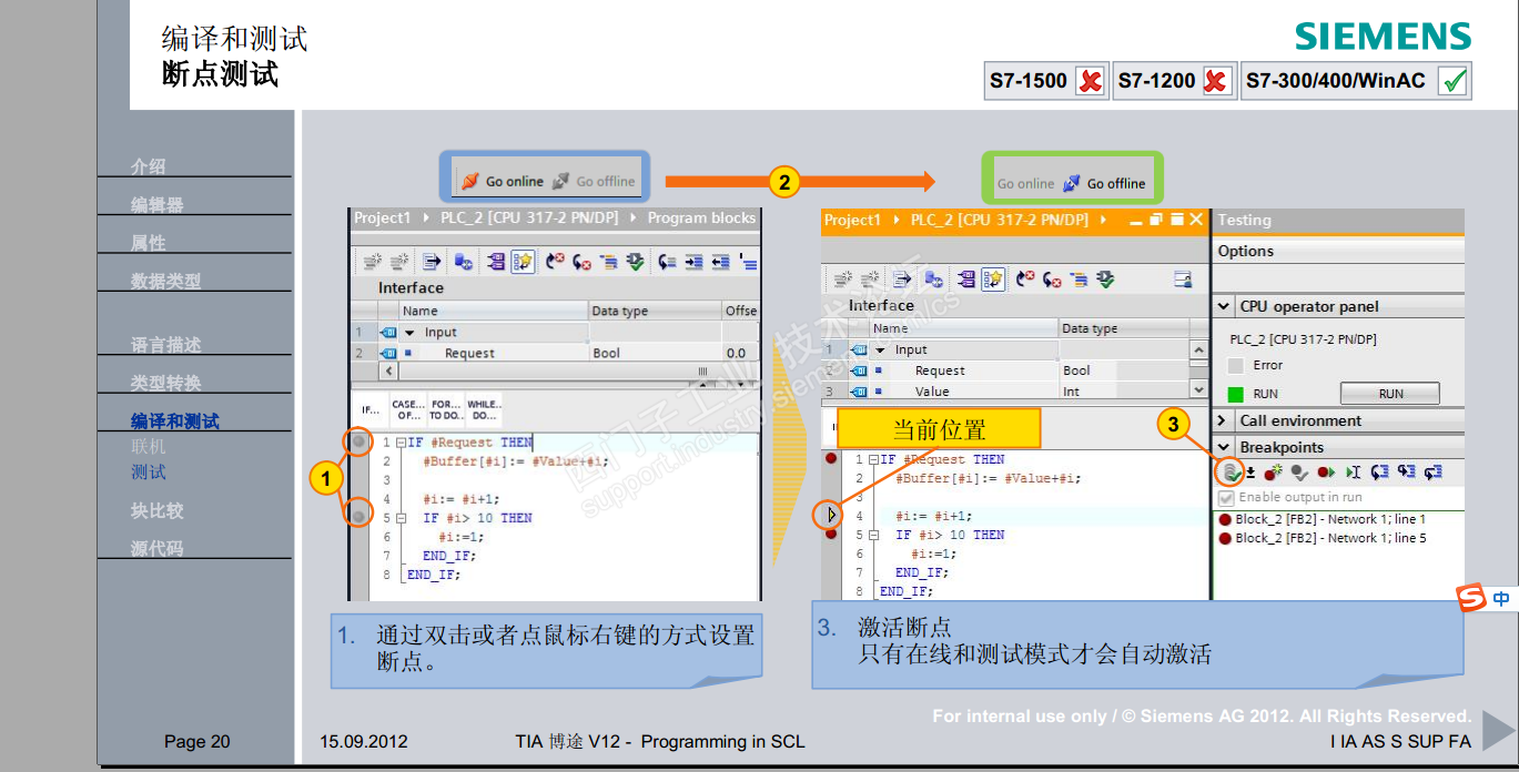 您说的是断点调试吧,博途下是支持的
