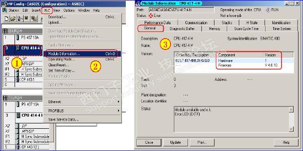 Simatic Manager在线检查可以判断CPU当前操作系统版本号,请按如下①②③步骤进行检查: