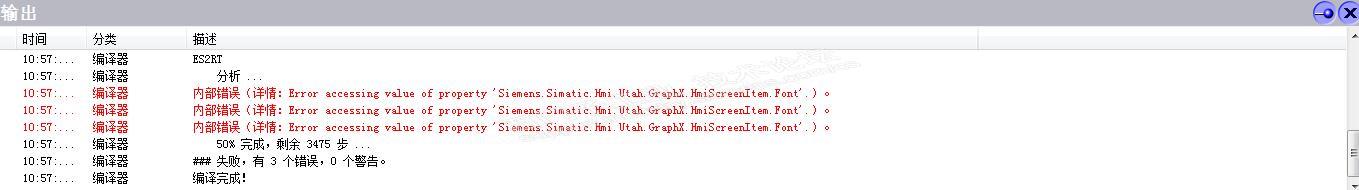 wincc flexible2008sp4版本,编译出现内部错误,不知道怎么解决,请大神们指教下!其他项目文件编译没问题。这个项目文件一开始是编译是没有错误的,后来修改了一些画面和数据后就出现了这个问题。因为修改的东西比较多,所以恢复的话,也不知道恢复到哪一步才是正确的。附图如下: