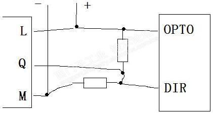 Q点OFF的时候:两个电阻分压,得到5伏给DIR端口。端口电流是留出状态,呈现ON状态。