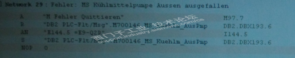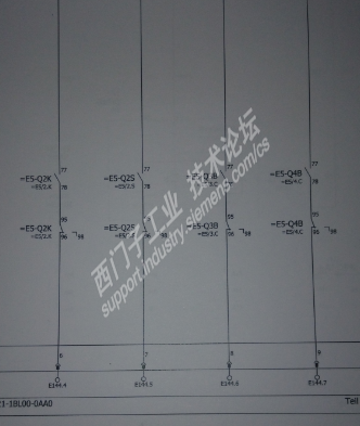 一次维修德国进口设备的一个简单故障,外部冷却泵过载(如图1),从报警信息知道=E1-Q1D电机保护器跳闸了;检查电机电阻三相平衡阻值正常,负载很轻;为什么会过载呢,于是爬上设备顶部,打开电箱门,结果怎么也找不着=E1-Q1D这个东东;那就看看梯形图吧(还好设备上可以看);梯形图显示DB2.DBX193.6对应I144.5,电机保护器为=E9-Q2R(如图2),于是又爬上设备顶部找=E9-Q2R,还是没有,怎么回事?没办法,去资料室借原理图看看吧,原理图I144.5对应电机保护器为=E5-Q2S(如图3)。这下电箱内应该找到=E5-Q2S了吧,确实是它(如图4)。