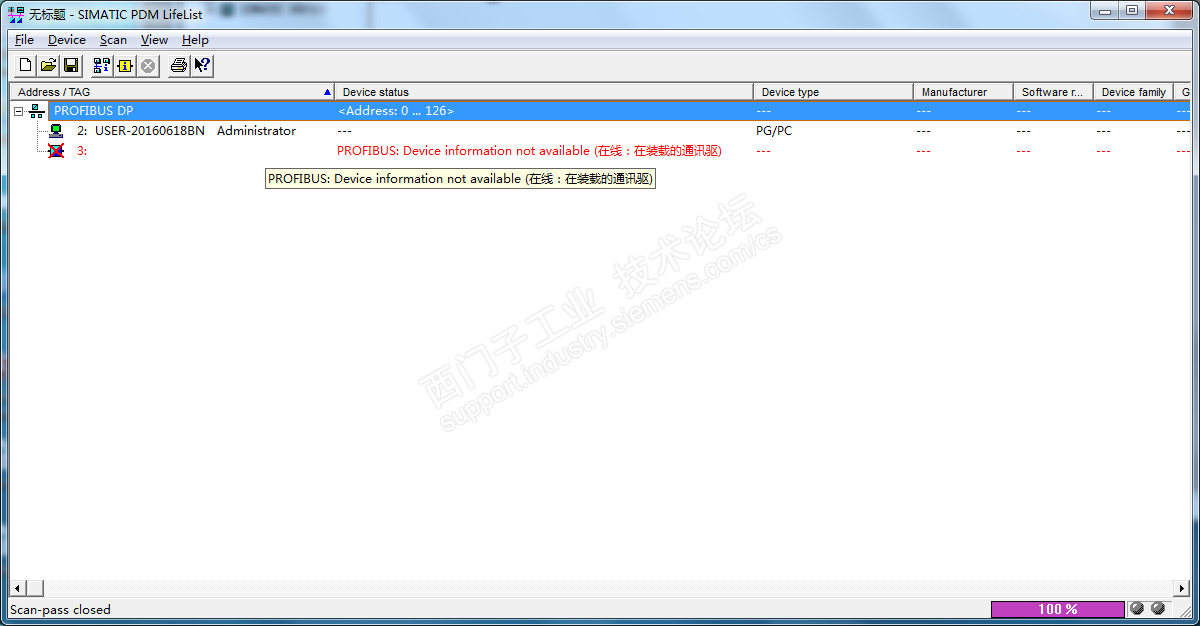 谢谢楼上两位的解答。编程线插在cpu的MPI口后,按理说PC/PG接口参数只能设置成MPI通信的方式。在PDM中扫描的时候直接是扫描失败。昨天打电话问了西门子的售后,他们也不知道,最后给我的解释是,我的MPI/DP/PPI转USB的适配器没有供电,所以用PDM失败。但是我的适配器上的MPI,POWER,USB的三个灯是亮的。由于我的适配器上是没有接供电口的位置,所以他们提出换一个带编程口的DP口。但是我手上没有,不知道他们的建议是否行的通。第一个图是接couple的结果。第二个图是接link的结果