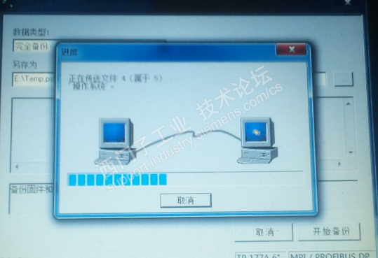 4.用电脑通过MPI进行备份程序为:temp.psb,因为无原程序。当进行到5分钟左右备份过程通信中断。重复测试几次都是一样,HMI的通信波特率为:187.5K. 判定通信接口有问题。