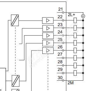 那些21-29的触点都接24V+?右侧的公共点接24V-?电流是怎么走向的?
